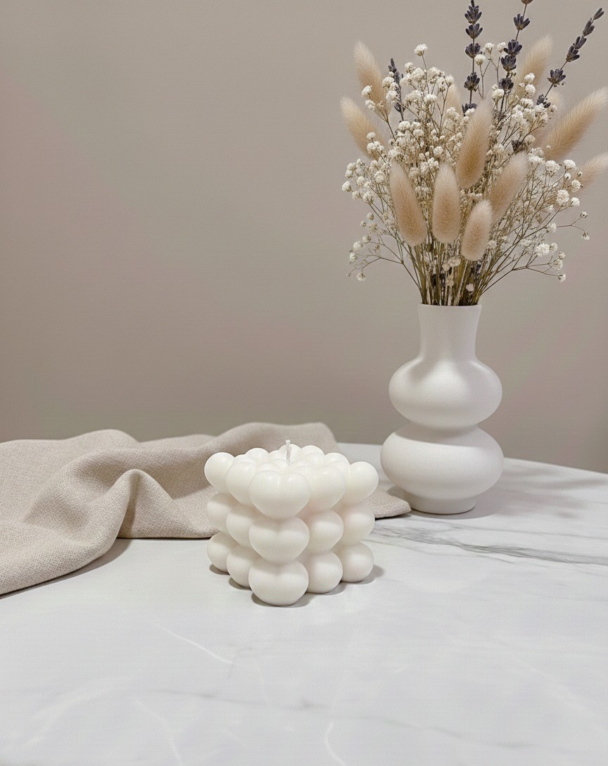 Celebrează iubirea cu AMORE, o lumânare creată special pentru a aduce o vibrație caldă în casa ta. Cu un design ludic, decorat cu inimi delicate și linii geometrice, AMORE transformă simbolul afecțiunii într-o piesă decorativă minimalistă și premium. Este cadoul ideal pentru persoana iubită sau pentru a adăuga un strop de romantism decorului tău.